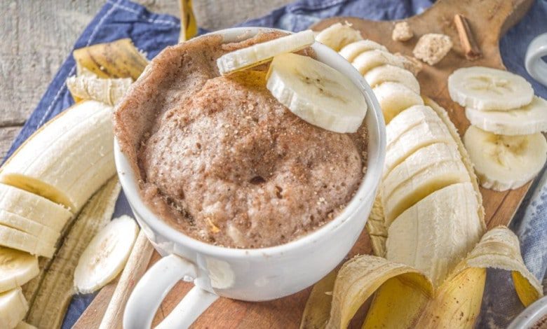 Receita de bolo de caneca de micro-ondas feito com banana
