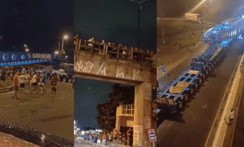 A escolta de um transformador de energia eólica de grandes dimensões chegou a João Pessoa na madrugada desta quinta-feira (20), após sair da base da Polícia Rodoviária Federal (PRF) de Alhandra, no Litoral Sul da Paraíba. Vídeos nas redes sociais mostram a população comemorando a passagem da carga com música, churrasco e fogos de artifício