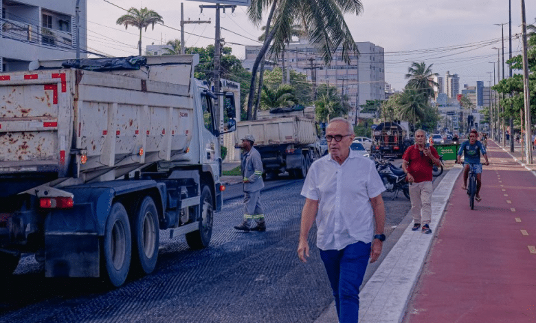 Cícero Lucena inspeciona recapeamento asfáltico no Cabo Branco e projeta serviços para Miramar e Tambaú