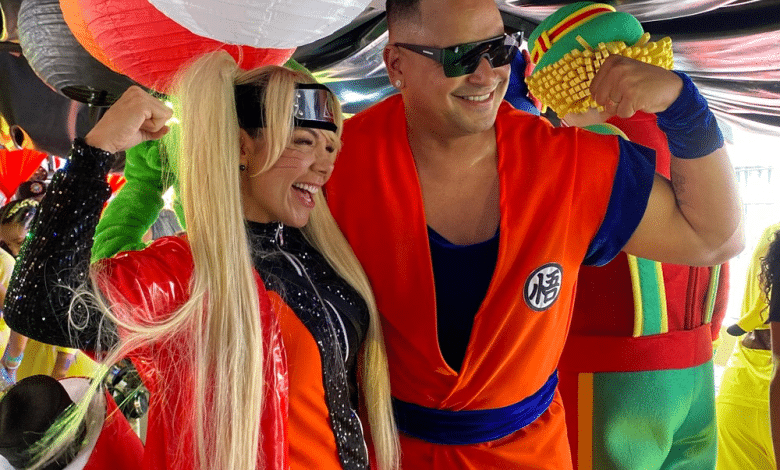Fantasiada do personagem de anime Naruto, Carla Perez puxou o trio elétrico infantil “Pipoca Doce” neste sábado (10), no circuito Osmar, no Campo Grande, em Salvador. A artista estava acompanhada do marido, Xanddy Harmonia, que também se vestiu de um personagem de desenho japonês, o Goku.
