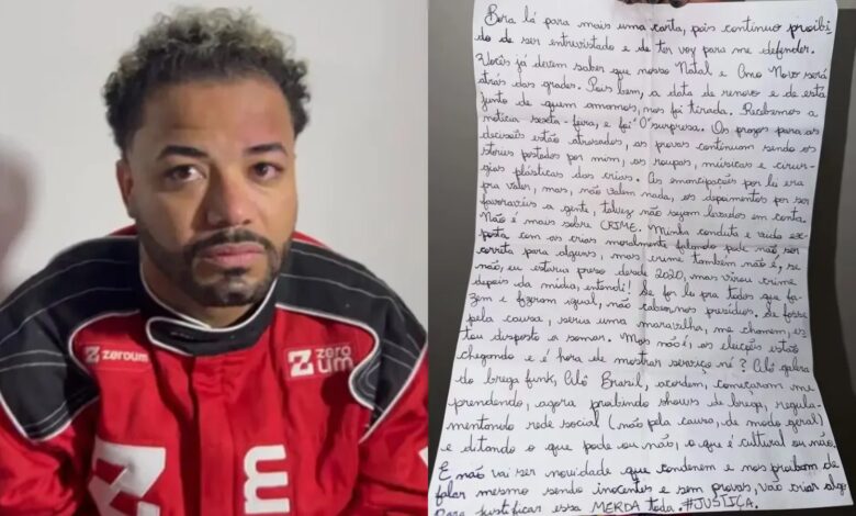 Ele encerrou a carta com mais um ataque direto ao sistema judicial. “E não vai ser novidade que condenem e nos proíbam de falar, mesmo sendo inocentes e sem provas, vão criar algo para justificar essa m***a toda”, disse.