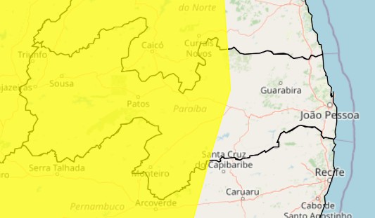 O alerta de acumulado de chuva abrange um número ainda maior de municípios paraibanos. Confira a lista completa: