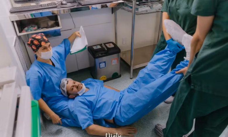 Pai desmaia ao ver filha nascer em SC, diverte equipe e vídeo viraliza nas redes sociais