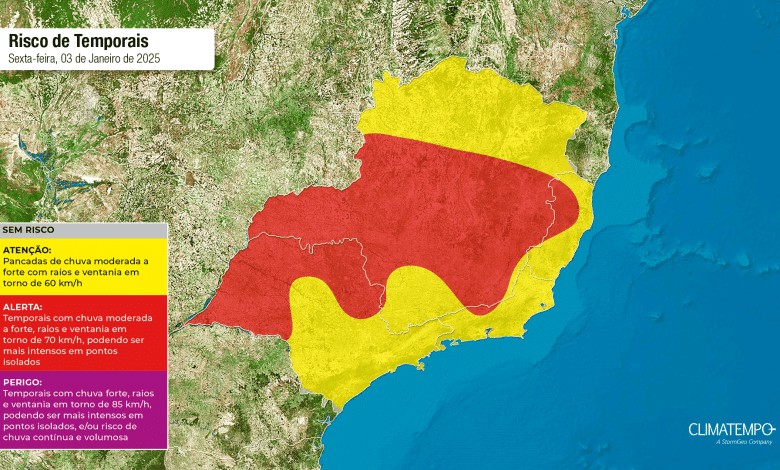 Figura 1- Mapa de risco para essa sexta-feira 03 de janeiro de 2025. Fonte: Climatempo